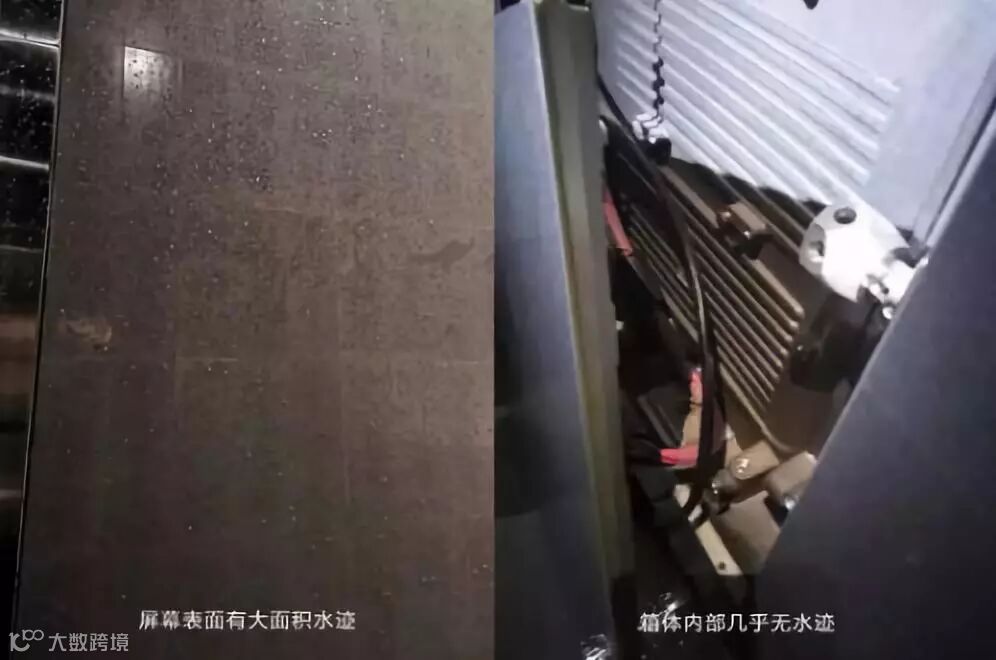 今年8月15日的下午3点,雷曼光电一块面积达77平方米的P1.2 COB高清显示屏,在搭建过程中因楼顶消防管道喷头松动遭遇大量喷水“洗礼”,水瀑倾泻并大面积溅射屏幕表面。经清理检查,仅17个小时后,也就是8月16日早8点,雷曼COB高清显示屏正常开启运行,COB集成封装显示屏的防护性能由此可见一斑。