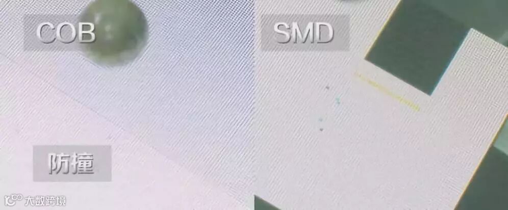 3、防水、防潮、清洁测试:在点亮的情况下,COB产品正面溅水无损坏,SMD产品正面溅水出现损坏; 在点亮情况下,85%湿度环境中,COB产品可正常工作,而SMD产品无法正常工作;产品正面如有灰尘或者污渍,COB 产品可用湿抹布直接擦拭清洁,而SMD产品用湿抹布清洁后会出现损坏。