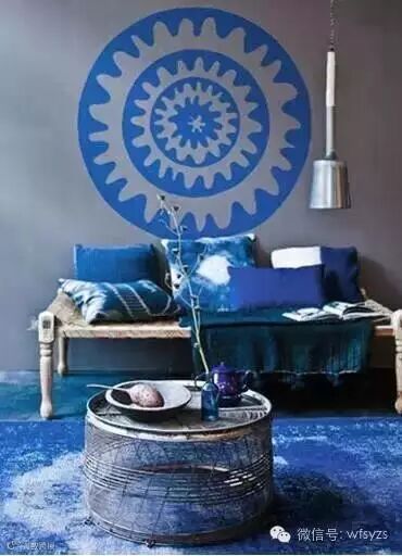 在居家环境中蓝色所传递出来的效果是镇静的,使人安静,与之相搭配的色彩也能很好的与它和谐共处。