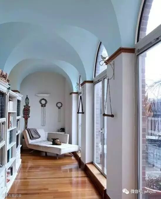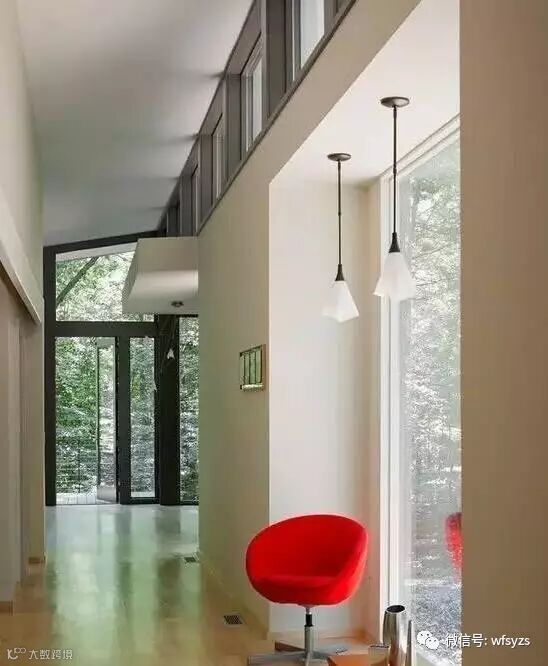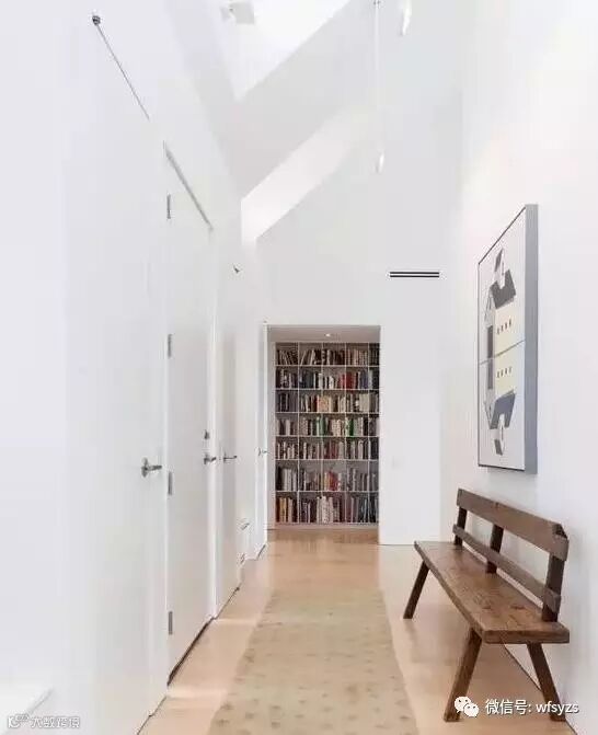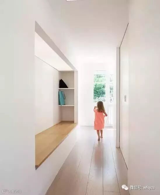 长长的走廊里还可以开辟出小小的休憩空间,随手翻翻书或者喝杯茶,晒晒太阳倒是一件很惬意的事情。当然过于狭窄的走道不适合做这样的设计。