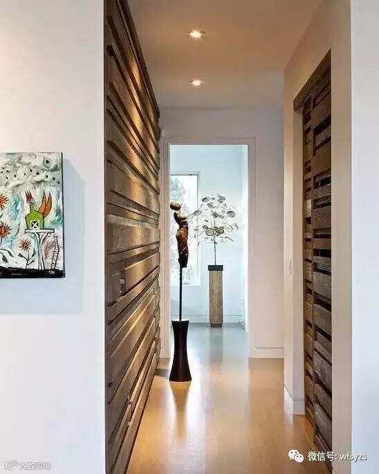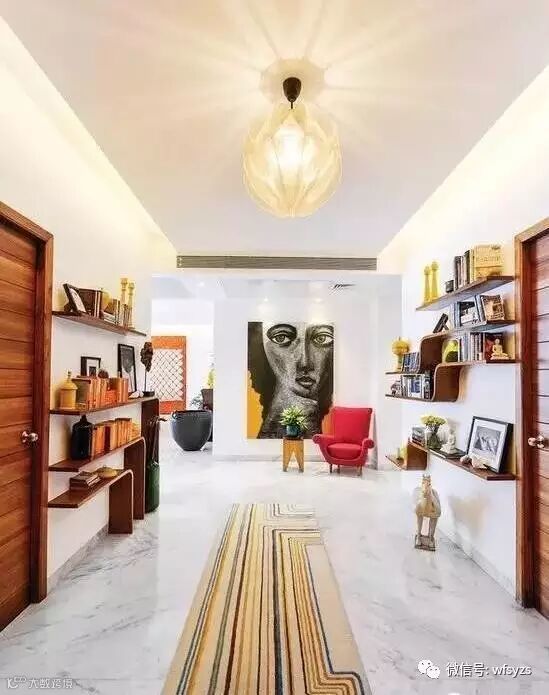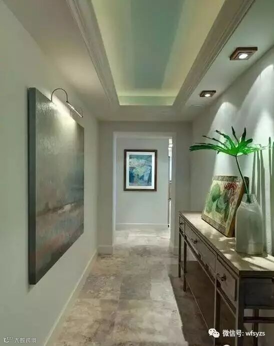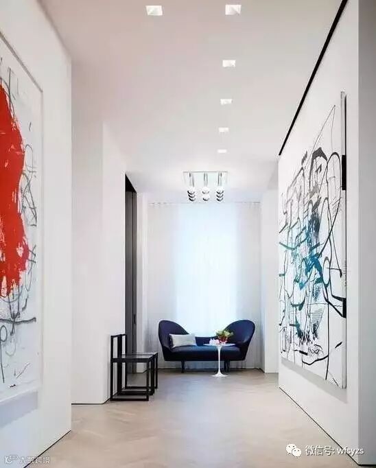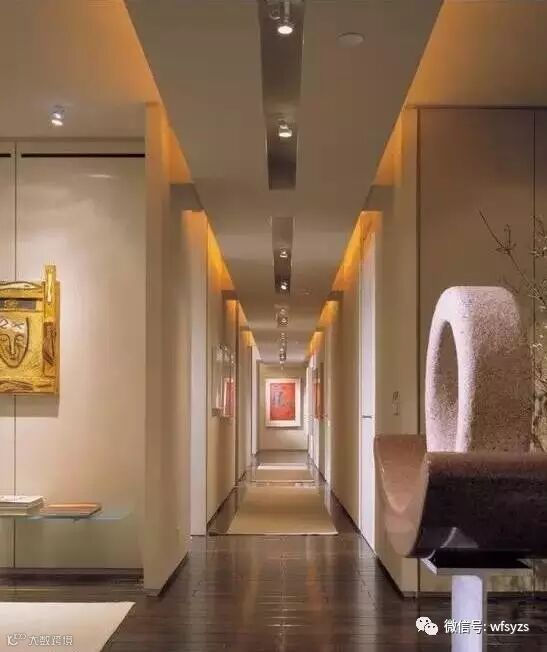 要注意的是,如果在封闭式采光不好的走廊里陈列艺术品一定要注意灯光的设计。