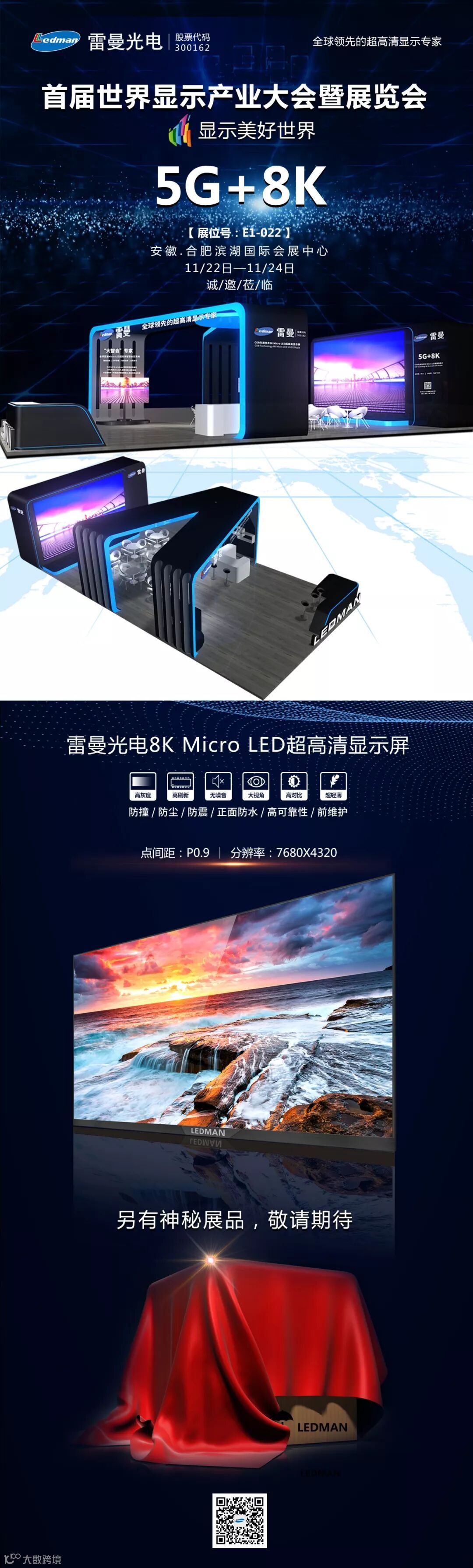 届时雷曼光电将携8K Micro LED超高清显示屏及神秘展品亮相安徽合肥滨湖国际会展中心E1-022展位,敬请期待!