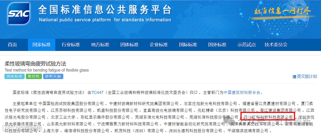 作为国产高强屏幕保护玻璃的领军企业,虹科创新坚持聚焦技术创新、争当行业先锋。现已拥有发明专利44件,实用新型专利208件。先后获得国家级高新技术企业、国家科技进步二等奖、全国制造业单项冠军,国家级智能制造示范工厂、绵阳市十大创新企业等荣誉。虹科创新能够参与国家标准的制定,代表着企业在该行业具有较高的专业水平和影响力,得到了行业的认可和政府的信任。将自身先进技术融入国家标准,不仅是对虹科创新技术实力的认可,也使企业在行业中占据技术制高点,有效树立了虹科创新在行业内的领导地位和影响力。