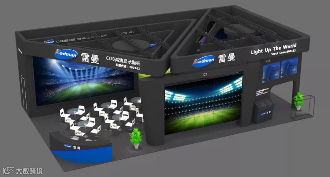 户外固装N系列产品,双重防水可户外裸装,并联模组结构,无风扇设计等特点提升产品可靠性。值得一提的是,展出的N系列产品中有一块是用雷曼封装专利产品——非对称节能型346 LED灯珠制作,该封装技术荣获了中国专利优秀奖。其创新的非对称节能型设计,下倾角为40度,可视角度更大,高亮度,节能30%,极大的降低LED显示屏上倾角无效能源消耗减少光污染。
