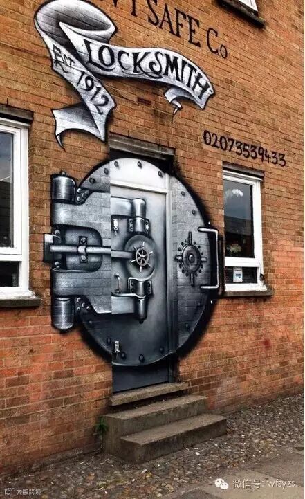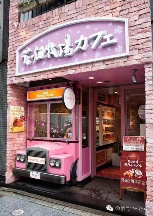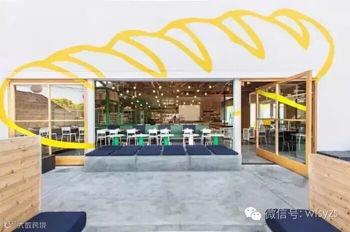 金字塔式的黄色涂鸦,感觉像一束灯照亮了店门,绝对是吸睛的焦点!