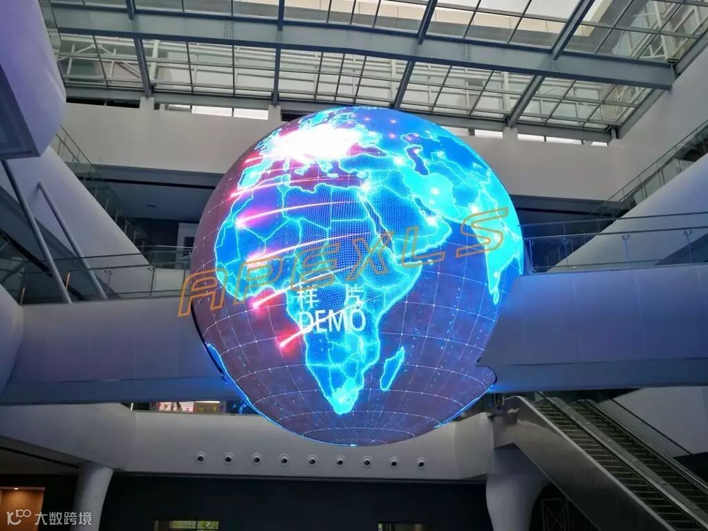 “时空球”为直径8米的户内P7.62 LED球形显示屏,是康硕展自主设计、研发、生产的具有专利产品。