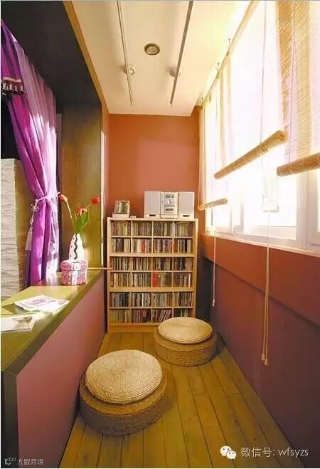 每个人都希望家里有个可以让自己静心阅读的地方,用小阳台来改造就是很好的做法。放上舒适的坐垫、精致的花卉小盆栽,大片的绿色看起来生机盎然,然后享受一下午暖暖的阳光。