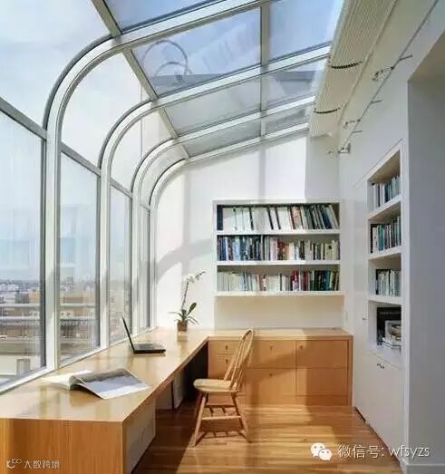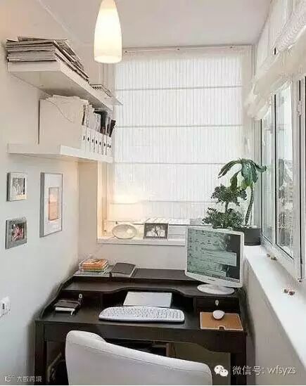 阳台空间一般都比较小,可以考虑改成小书房,毕竟小书房需要的空间不大,小小的阳台利用起来更合适,而且采光好。色调方面可以选择自己喜欢的颜色,但白色会显得比较清新自然,再放些精致小盆栽,一个小清新的舒适书房就出来了。