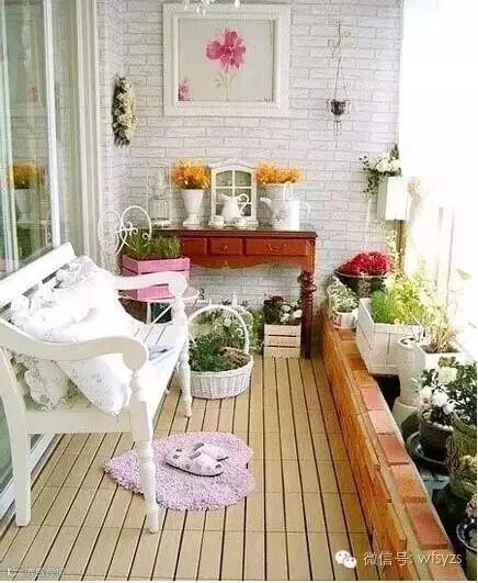 阳台改造成小花园是最常见的做法,毕竟家居中总的有个地方多布置一些绿色植物,既能美化家居,也能清新空气。在阳台中多摆放一些植物,放上舒适的坐垫与小茶几,一个充满生机的小空间就出来了,闲来没事可以置身诸多花草植物中喝喝咖啡偷偷懒,这样的空间再赞不过。