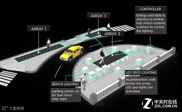这套系统最关键之处就是地砖,采用了特制的材料制造。一旦有行人从地砖上走过,系统就可以自动收集相应的能量,通过系统转化为电能,并且将电能存储在锂电池系统中。当夜幕降临之后,收集的电能就可以为马路周边的LED灯提供电力支持,从而达到环保的目的。