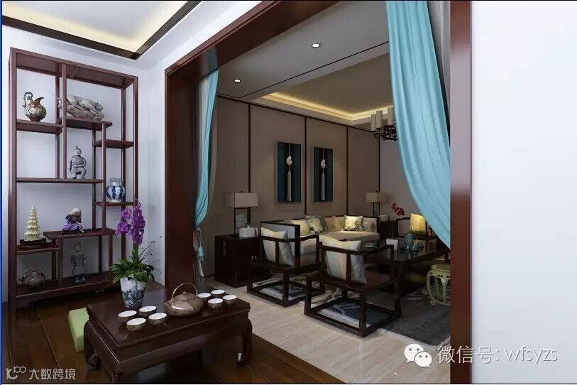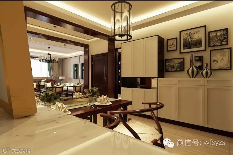 留白是国画艺术中的精髓,体现虚实相生,无画处皆成妙境的艺术效果。它可以拓宽空间的层次布局,给人留下遐想的余地,更强调了艺术意境的营造。似乎感觉什么都不用画,就可以让欣赏者在自我构架的想象中任意驰骋,激发审美经验,使“无中生有”深化到一个新的高度。将留白手法运用在新中式家居的设计中,则减少了空间扑面而来的压抑感,并将观者的视线顺利转移到被留白包围的元素上,从而彰显了整个空间的审美价值。