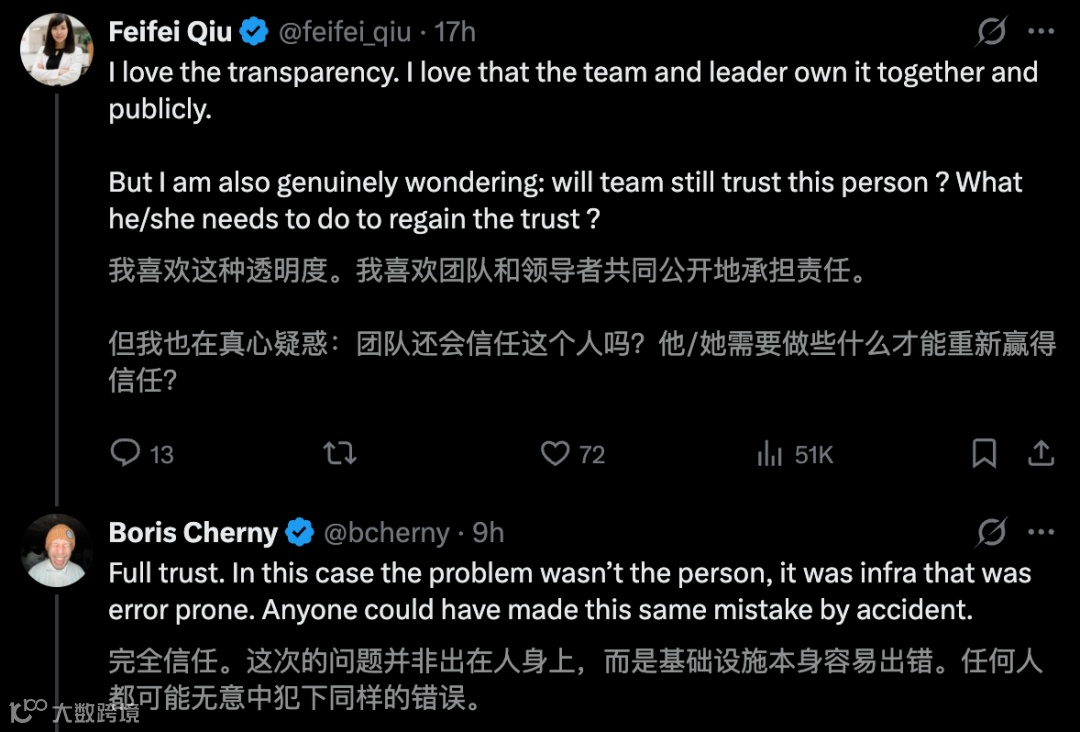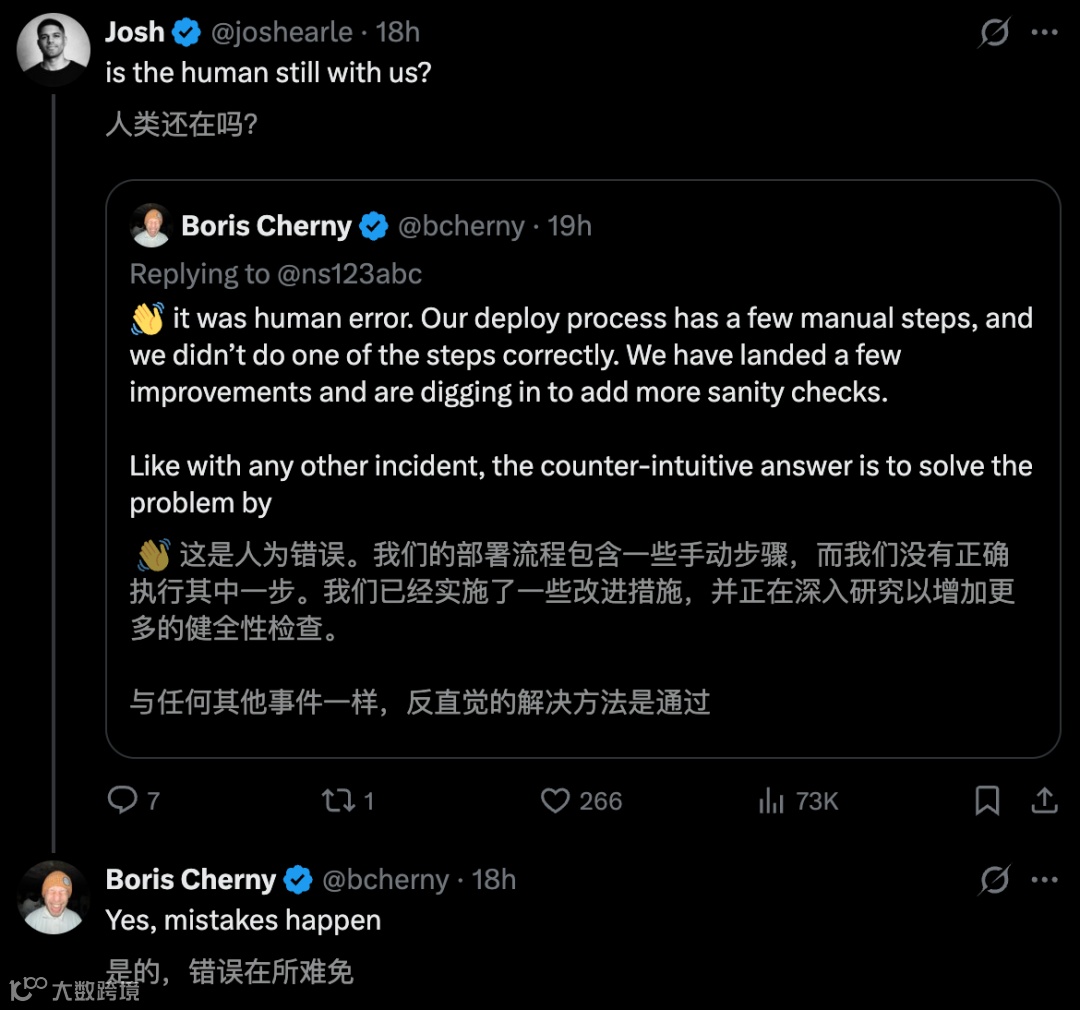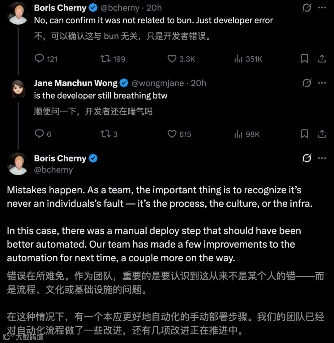 面对"谁来背锅"的尖锐质疑,Anthropic明确践行"无责备(Blameless)文化"。团队强调错误源于流程漏洞,绝非个人过失。工程总监Palcu表示:"系统规模化运行中出现断裂时,追究个体责任无济于事。"该理念获开发者社区广泛好评,被赞为"危机应对典范"。