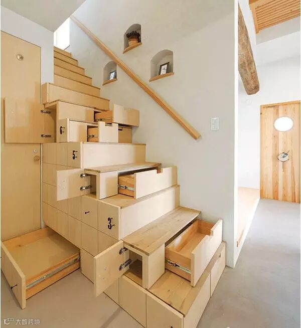 楼梯是无人不知的收纳利器啊,大小可调,空间也足够大。太方便了,真羡慕家里有楼梯的人啊!!!