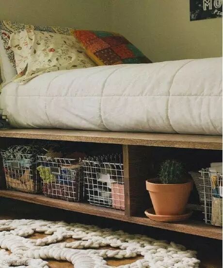 床&飘窗&榻榻米下方的空隙位置,都是收纳的好地方!设计的时候可以大致规划一下,要放置什么东西,这样装修好以后,尺寸就是刚刚好了。