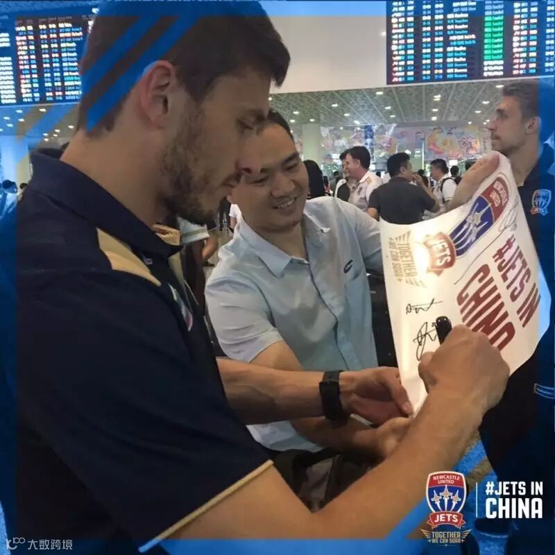 8月28日下午约四点,由雷曼投资全资收购的澳超劲旅纽卡斯尔喷气机足球俱乐部抵达深圳宝安国际机场,现场接机球迷经过一个小时的等待,终于见到球队队员。当纽卡斯尔喷气机首席执行官洛瑞.麦克金纳及主教练米勒、球员等30余人出现在机场到达通道时,粉丝们高举横幅、海报、鲜花,迎接纽卡斯尔喷气机足球俱乐部人员的到来。