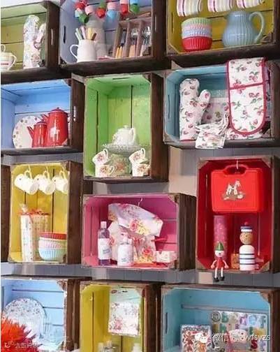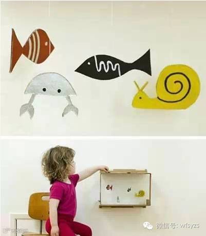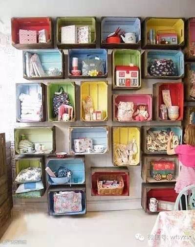 收纳展示架:将高高低低的鞋盒挂在墙上,这是绝好的展示陈列架,分类收纳孩子的各种物品,一目了然。