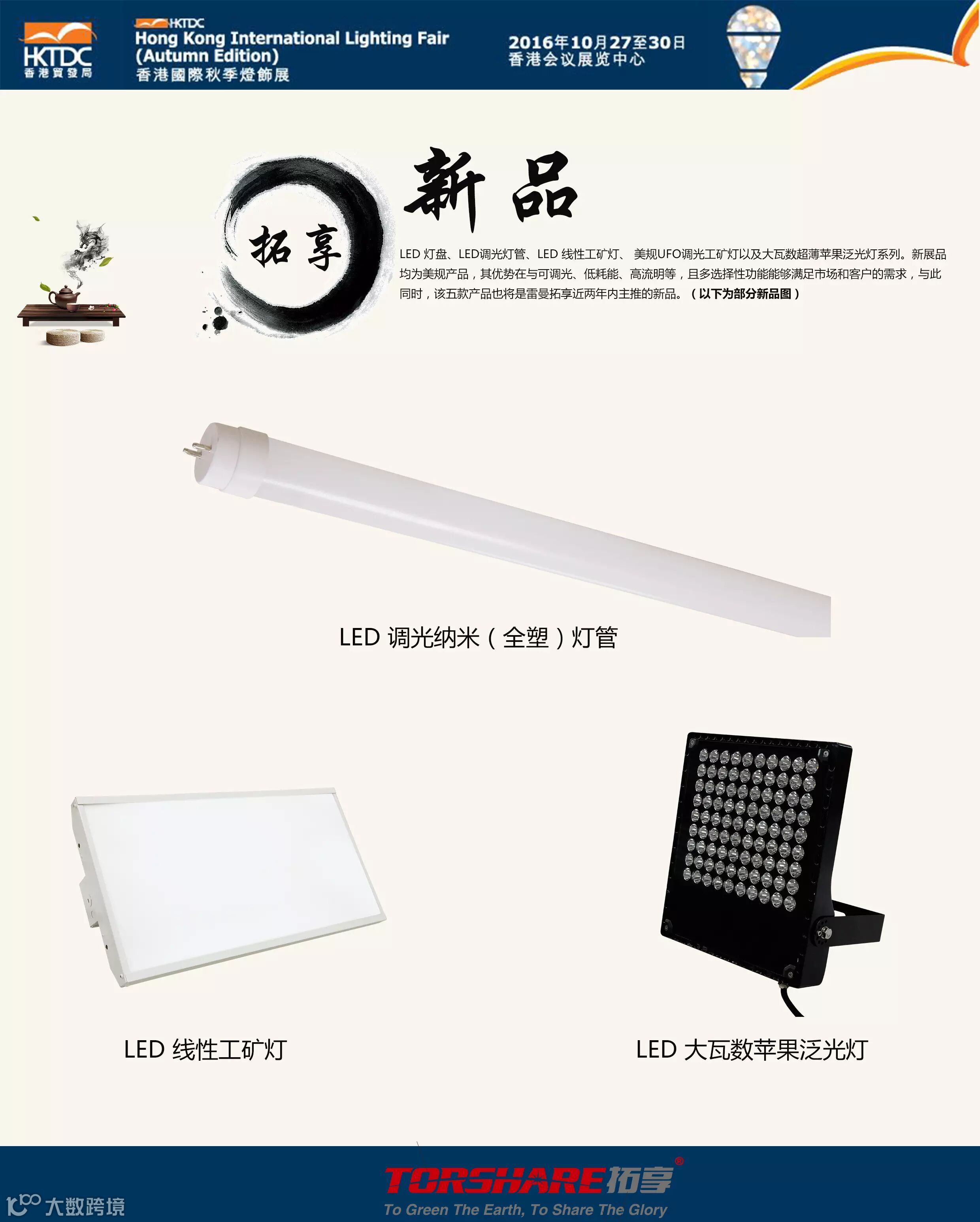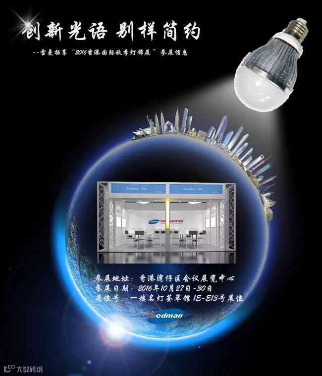 2016年10月27日-30日,由香港贸易发展局主办的第十七届香港国际秋季灯饰展在香港会议展览中心举办。此次灯饰展,雷曼股份全资子公司拓享科技将携研发新品亮相展会。