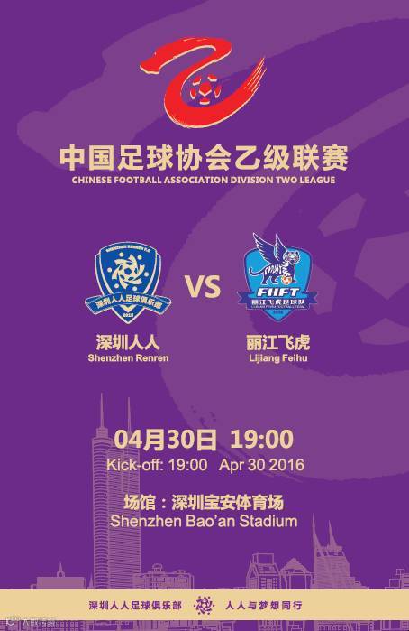 4月30日19:00,结束广东德比征程的深圳人人回归宝体,迎战下一个来势汹汹的中乙对手丽江飞虎。期待冲出重围的深圳人人邀您再次前来加油、参与!