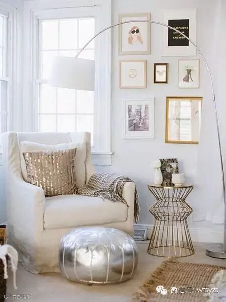 靠窗的位置也是布置读书角的好地方,白天可以借窗外的自然光,晚上也有落地灯提供照明。有光,有书,就有生活。