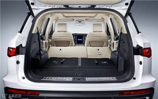 T800在内饰的用料、豪华感、科技感的营造上可以说堪称惊艳,中控大尺寸液晶屏、电子旋钮换挡、液晶仪表以及错落有致、层次感丰富的设计、大量皮革材质+缝线处理的运用,无处不在彰显豪华舒适。而且除了自动空调、全景天窗、智能语音系统、TYE-NET车机互联系统、通风加热座椅、电动吸合门、感应踏板、脚部感应尾门外,座椅采用了全新的商务型设计,另外在第二排门框处设有空调出风口,第三排座椅下方也有空调出风口。后备厢在放倒第二排一侧座椅后的数据为850L,第二排座椅完全放倒后的容积可达2000L。可以说,众泰T800的配置是即大又豪华。