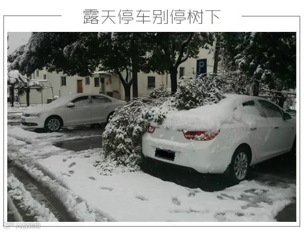 雪天停车是个难题,万不得已露天停放时一定要选择好停车的地点,千万不要停放在树下。雪后树上往往有较厚的积雪,经历昼夜的温度变化会形成冰凌或冰块,一旦树枝晃动便会掉落,对于爱车天窗、玻璃及车漆的伤害非常大。