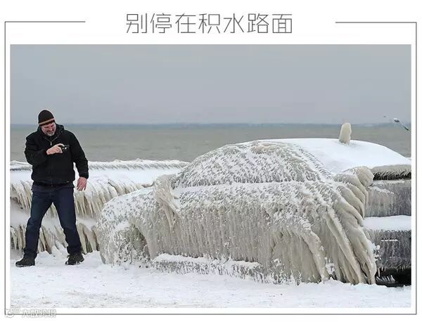雪天往往有些地方在白天温度高厚有融化后的雪水,在这些地方停车一夜积水会再次冻结,如果车停在这上面会让轮胎与路面冻在一起,若不留意贸然启动车辆,轻则会令轮胎胎面变形,重则会直接撕裂轮胎造成爆胎,所以雪夜注意爱车不要停放于积水路面。