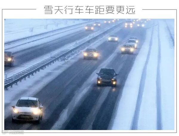 一般雪天造成事故的主要原因是因为与前车距离过近造成的,一般在正常天气下,40公里的时速要与前车有40米的车距,而在雪天情况下,就至少要保持100米的距离。其实你着什么急呢,跟车近了你也早回不了家,还是安全重要!