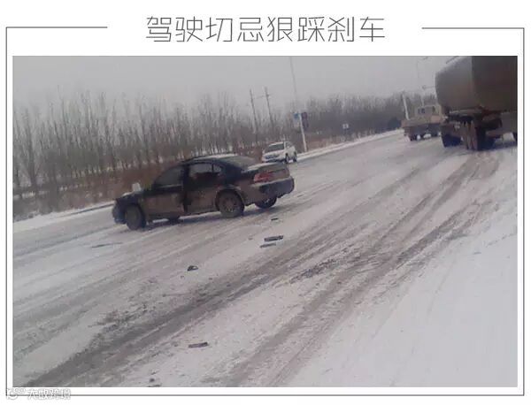 雪天驾驶时,最忌讳的狠踩刹车,即使你的车有ABS系统,在路面足够湿滑时,它也不能100%保证你的安全。而最正确的方法是轻踩轻抬,慢慢让车停住。