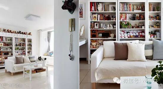 1、零碎小摆件收纳——大排的格子书架打造整齐感。很多人喜欢收集玩偶,大的玩偶摆放要求低,但是小而多的玩偶收纳不好的话就会显得家居凌乱不堪,大排的格子书架是零碎小摆件的福音,整齐的摆放在格子间,多而不乱,既解决收纳问题,又展示家居美感。