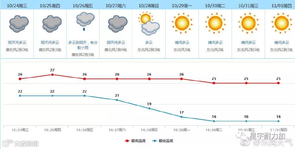 本周六开始最低温度20℃