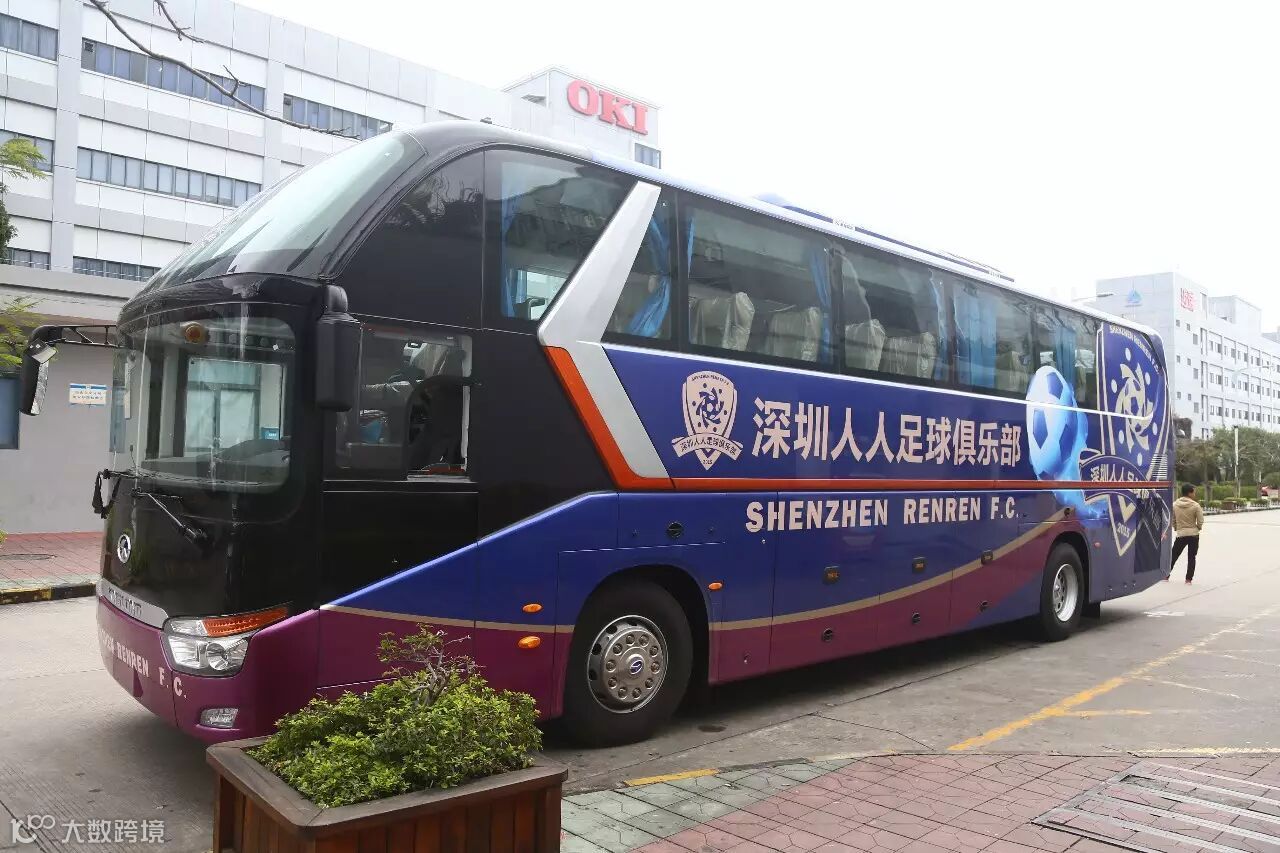 正所谓“兵马未动,粮草先行”,深圳人人队在后勤的保障上也做得相当不错,近日更是新购了球队大巴,这部大巴设计非常时尚,全车以蓝紫色为主色调,车身四面底部由金色和紫色飘带式烘托。车身四面都配有深圳人人队队徽,两侧车身标有“深圳人人足球俱乐部”的中英文全称。
