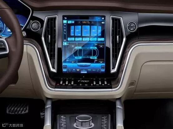 T700中控台配备的是一台同级最大10.4吋的高清触屏,大屏集影音娱乐、语音识别人机对话、地图导航、倒车影像、空调控制、互联网、胎压监测、车辆信息于一体,功能丰富,而操作如同操作手机一样便捷。