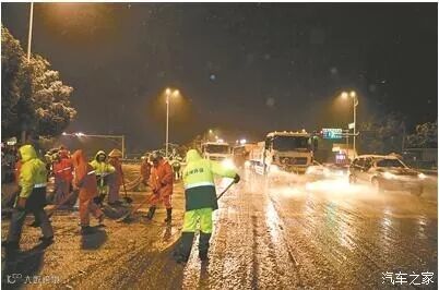 雪是够大,但是温度却跟不上,边下边化,导致路上的交通状况非常恶劣。