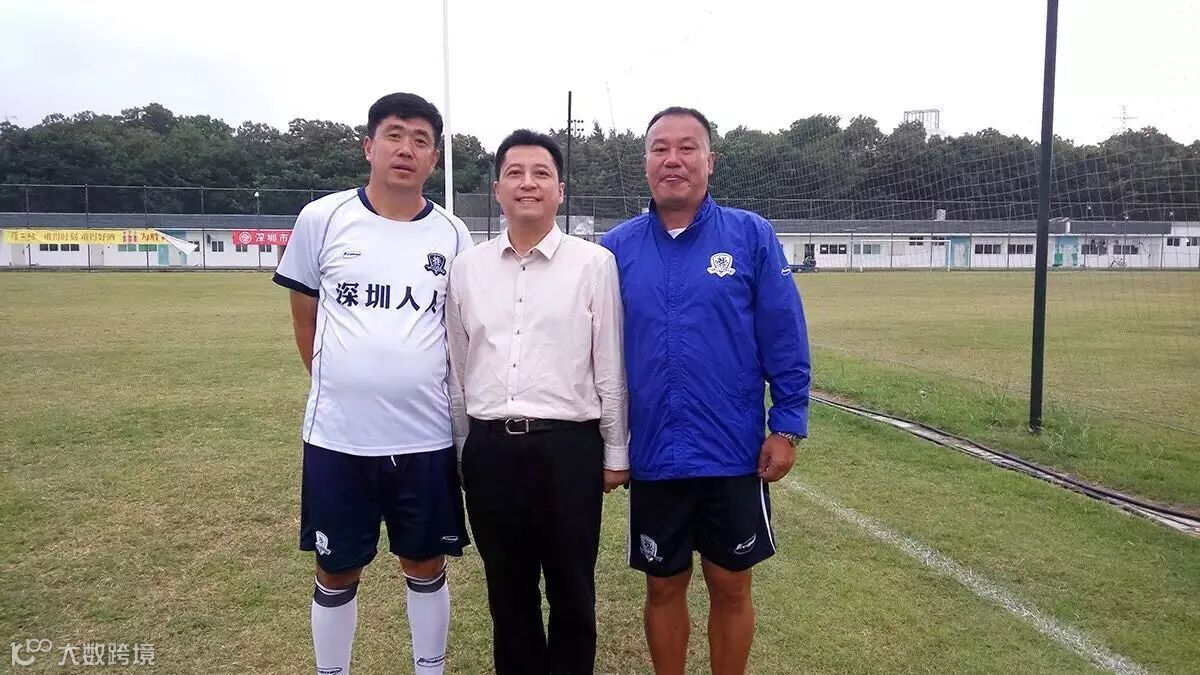 深圳人人董事长李漫铁与球队主教练张军及守门员教练赵图强合影