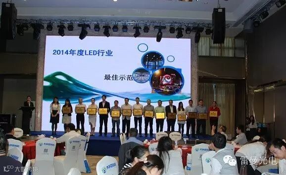 协会对2014年度在行业做出突出贡献的企业及优秀个人进行了表彰。雷曼光电控股子公司康硕展荣获“2014年度LED行业最佳示范应用奖”、同时凭借山东济宁奥体中心球形显示屏项目获得“2014年度深圳中小企业LED行业最佳雇主奖”,雷曼光电体育事业部张雪松总经理凭借过去在跨界营销与中超中甲足球联赛的合作荣获“2014年度LED行业十佳优秀职业经理人”。