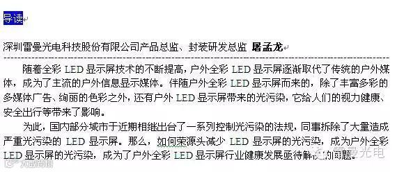 关于LED显示屏的光污染防治,在全球范围内,除了上海市颁布了LED显示屏最大亮度的限定值外,全球还没有专门针对户外LED显示屏的光污染限制标准。