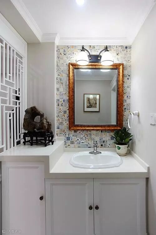 洗手台,用了几种颜色的砖来贴,空间感大了不少呢~