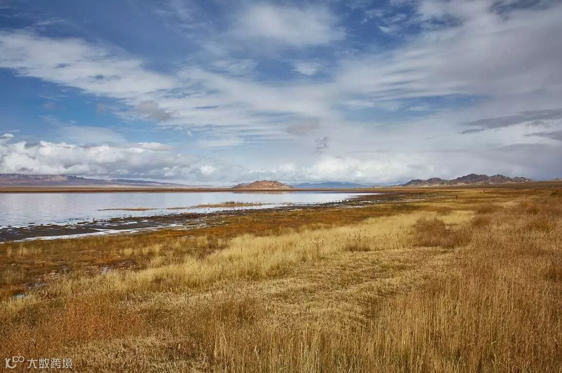 克鲁克和托素湖为一对情侣湖,其中“克鲁克”是蒙古语,意思是“多草的芨芨滩、水草茂美的地方”,属于微咸性淡水湖。这里水色清澈、湖面平静,景色绮丽旖旎。每年初春,克鲁克湖的冰开始融化时,成群的黑颈鹤、斑头雁、鱼鸥、野鸭等珍禽,从遥远的东南亚诸岛飞到这里筑窝垒巢、繁衍后代。黑颈鹤喜欢在克鲁克湖边沼泽地和芦苇丛中筑巢栖息,斑头雁、灰雁则在沙丘上垒窝居住。这里是鸟的天堂,鱼的故乡,咕咕嘎嘎的鸟鸣回荡在芦苇丛中,不知道秋天会有着怎样的景象呢?车队整齐转下高速,进入湖区砂石路面。
