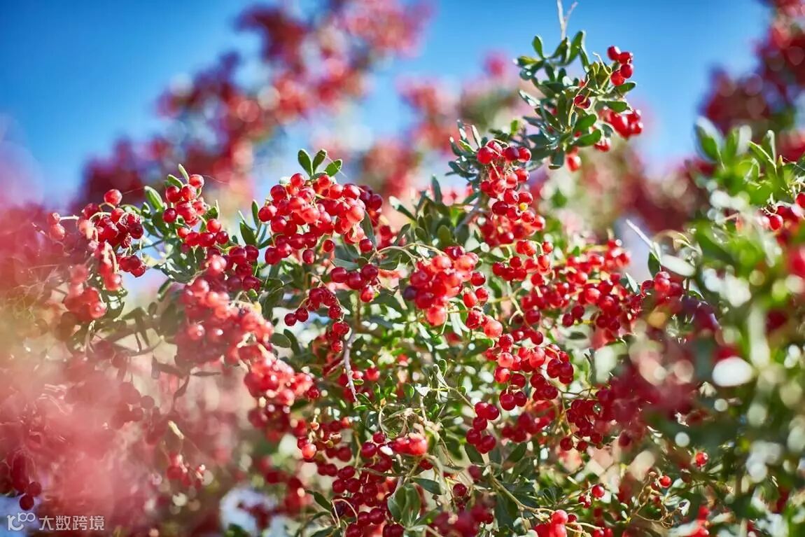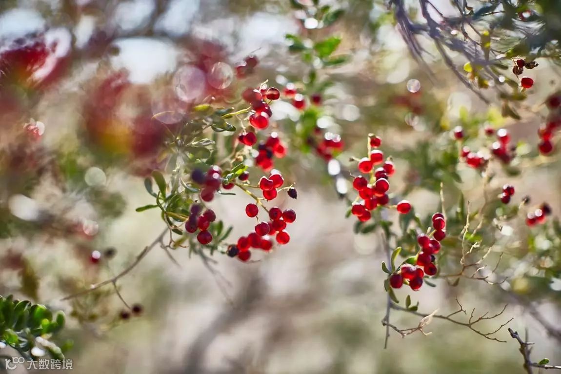 昨夜一场风雪,今早起来,祁连山脉一夜白了头,连绵山峰被白雪覆盖,在阳光下闪闪发光。天空湛蓝,秋天在这里以丰富的大地色系呈现,从山体的褐色延绵而下,赭黄的草场上游荡着牧群,克鲁克湖以蓝色分界,眼前是金黄的芦苇荡,正在晨光中,发出耀眼的光芒。道路两旁都是野生枸杞,在这里,我们停下脚步,好奇看看传说中的黑枸杞到底长什么样!