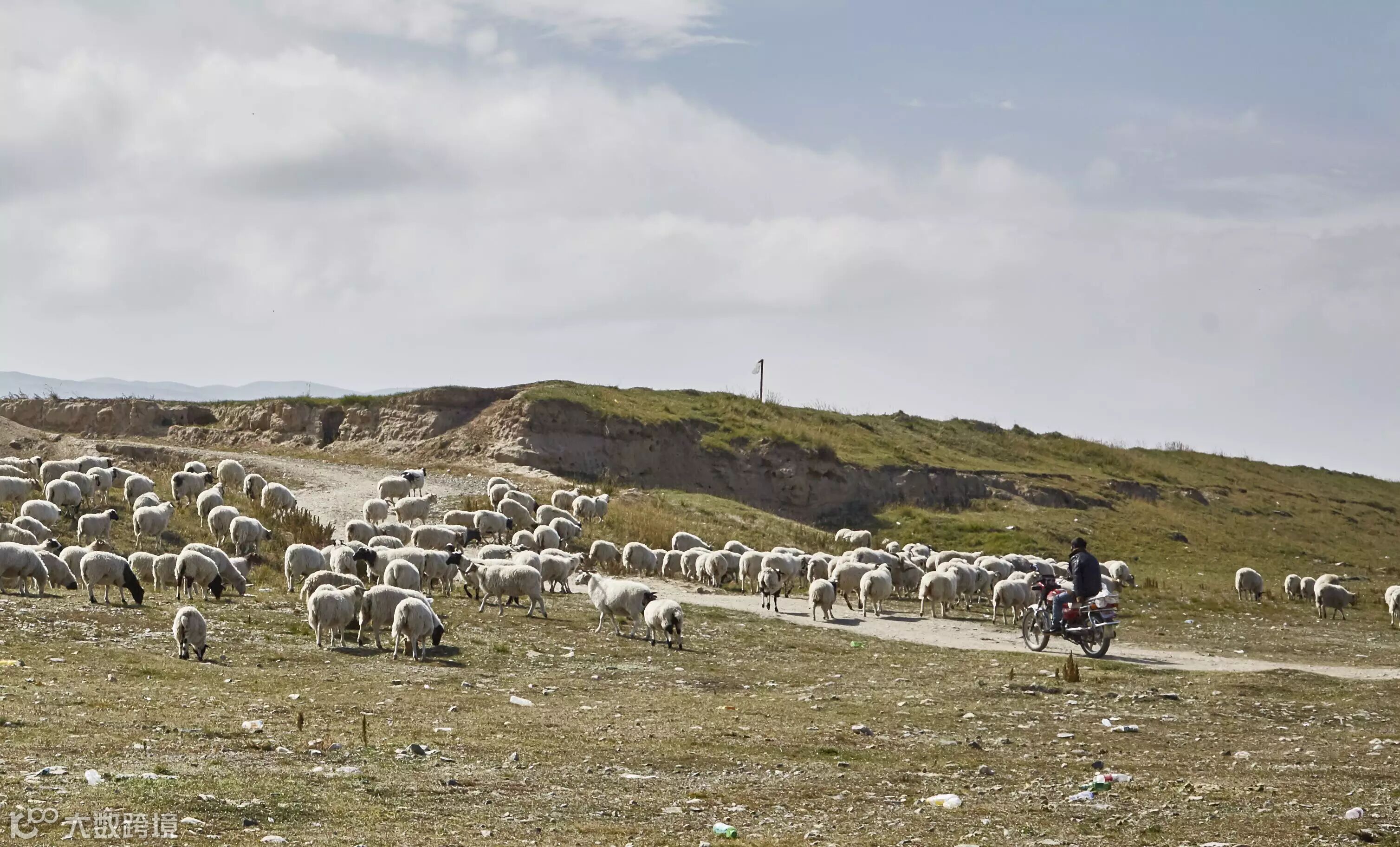 车队陆续驶离青海湖,有序前往地处109、315国道交汇的茶卡镇。途中海拔逐渐升高,车队成员通报着彼此的身体状况,以便随时做出调整。据了解,往年的九月,青海湖边很少能看到绿色的草被,也许是今年雨水更为充沛,一路的绿色景像也不并缺乏。然而,在这个牧场转场的季节,雨水会为牧民的牵移带来不便,而沿途大量羊群穿越马路,牧人骑着摩托驱赶羊群的画面也相当风趣。
