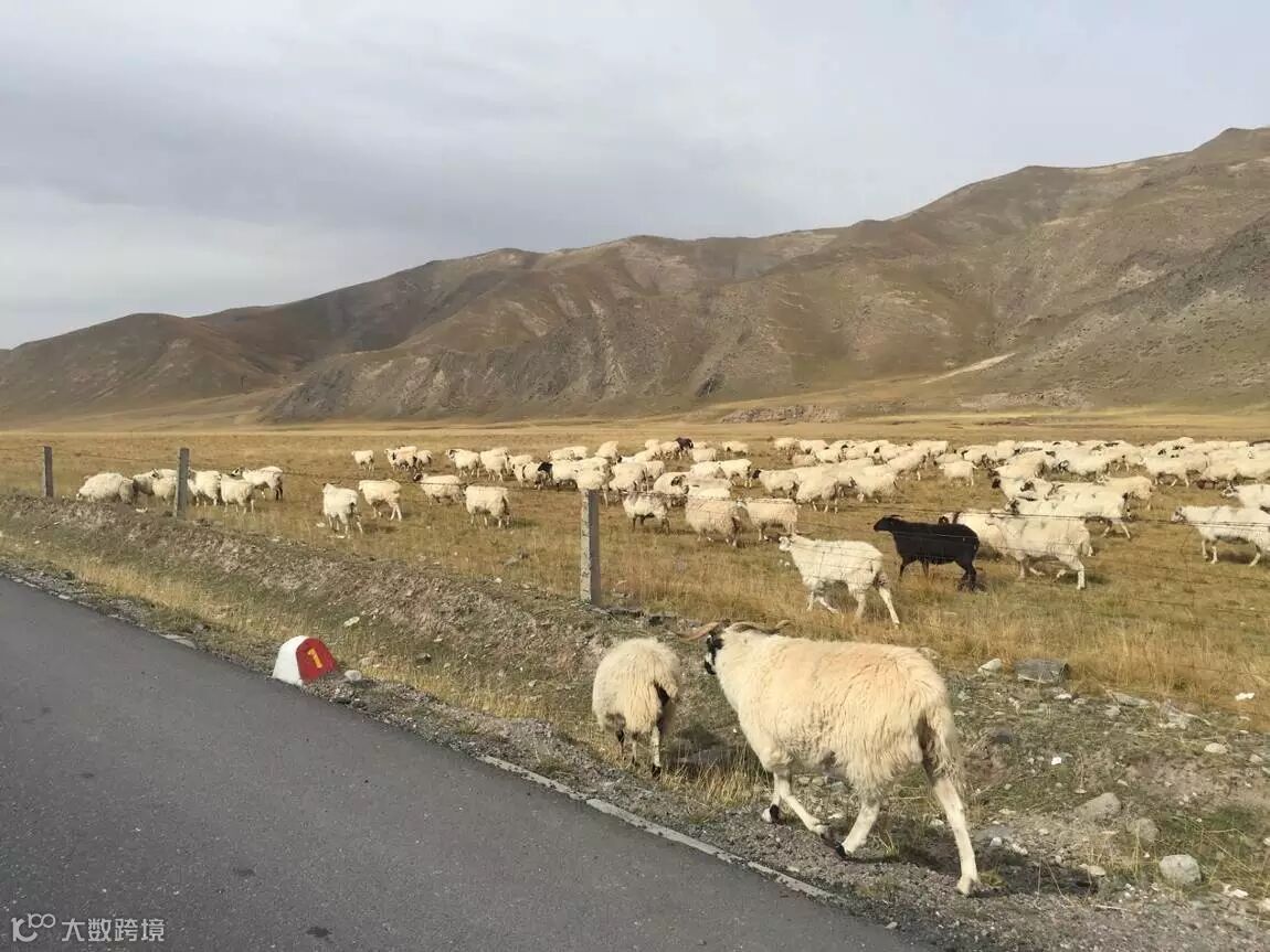 上午十点五十,车队顺利翻越海拔3740米的垭口,离开109国道进入G6京藏高速。进入高速后,车队设定了110公里每小时的巡航模式,休验众泰T600带来的操控便利。京藏高速也许是全国最具有特色的高速公路,首先它是开放车道,两旁并无护栏;其次,这里有U型通道,双向车道每隔100米左右即可无障碍掉头,据说这样的设计是为了方面牧民放牧时牛羊顺利通行,因此也可以见到路旁多有“注意牛羊 横穿马路”的提示牌。京藏高速路况较好,但对车辆操控性有着更高的要求,需要提起十二分的注意,冷不防可能前方就有一群动物忽然闯入!