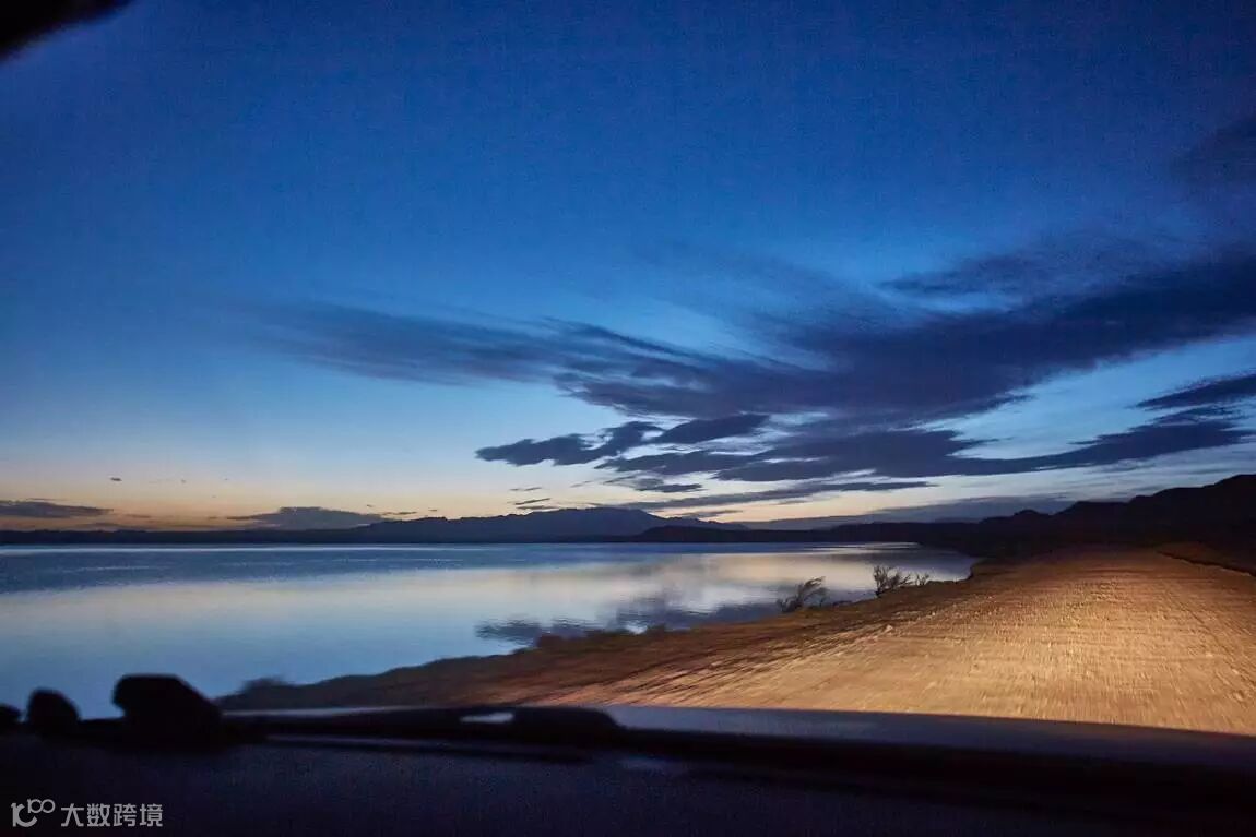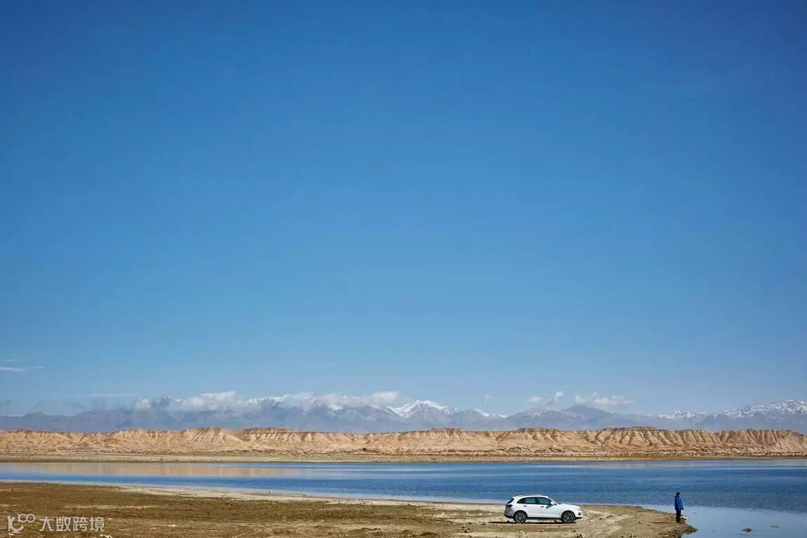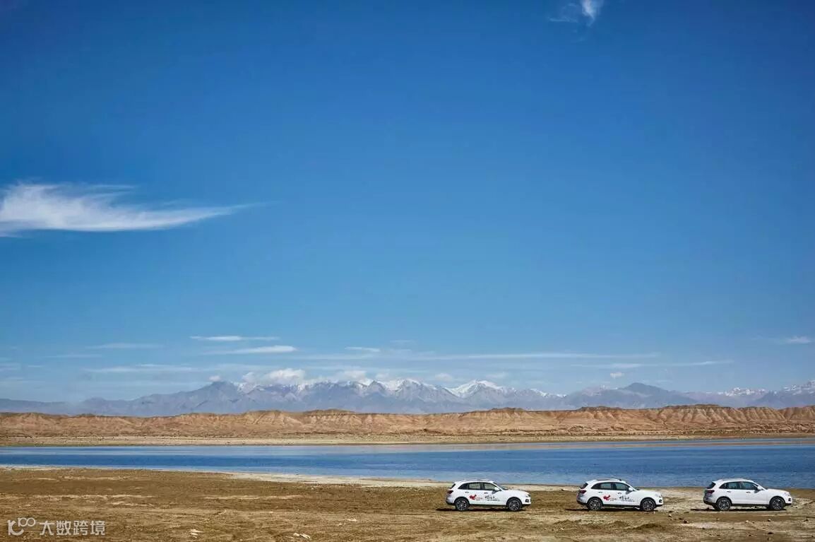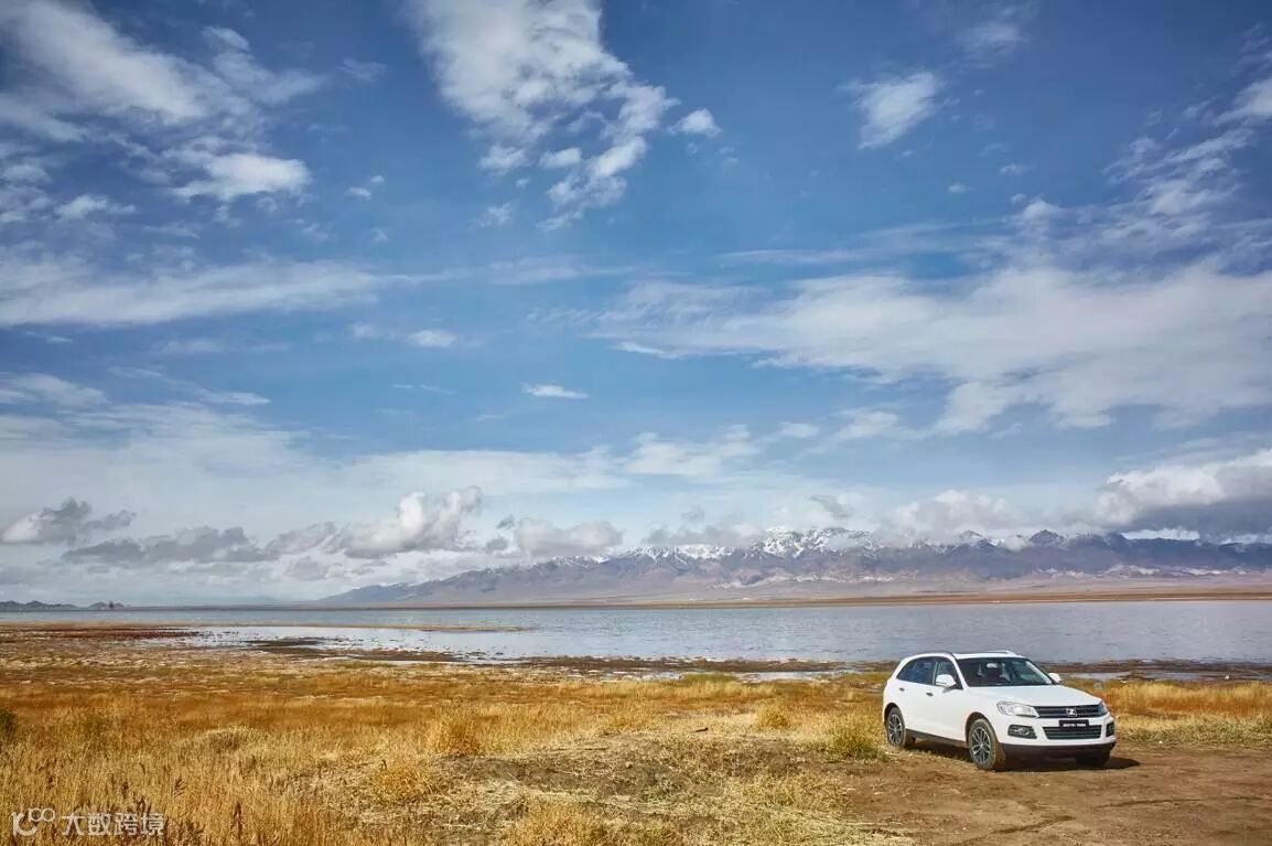 驱车三个多小时,均为柏油高速路面,众泰T600的动力表现在这样的路面,绰绰有余。调整至自动巡航,速度保持在100-110KM每小时左右,非常轻松。车程进行到一半,道路的右侧出现一个碧绿色大湖,这里是大柴旦湖,又叫大柴达木湖,属海西区域,远处是雄伟的库尔雷克山山麓,此刻山体依然被大雪覆盖,云朵浮游,心旷神怡。