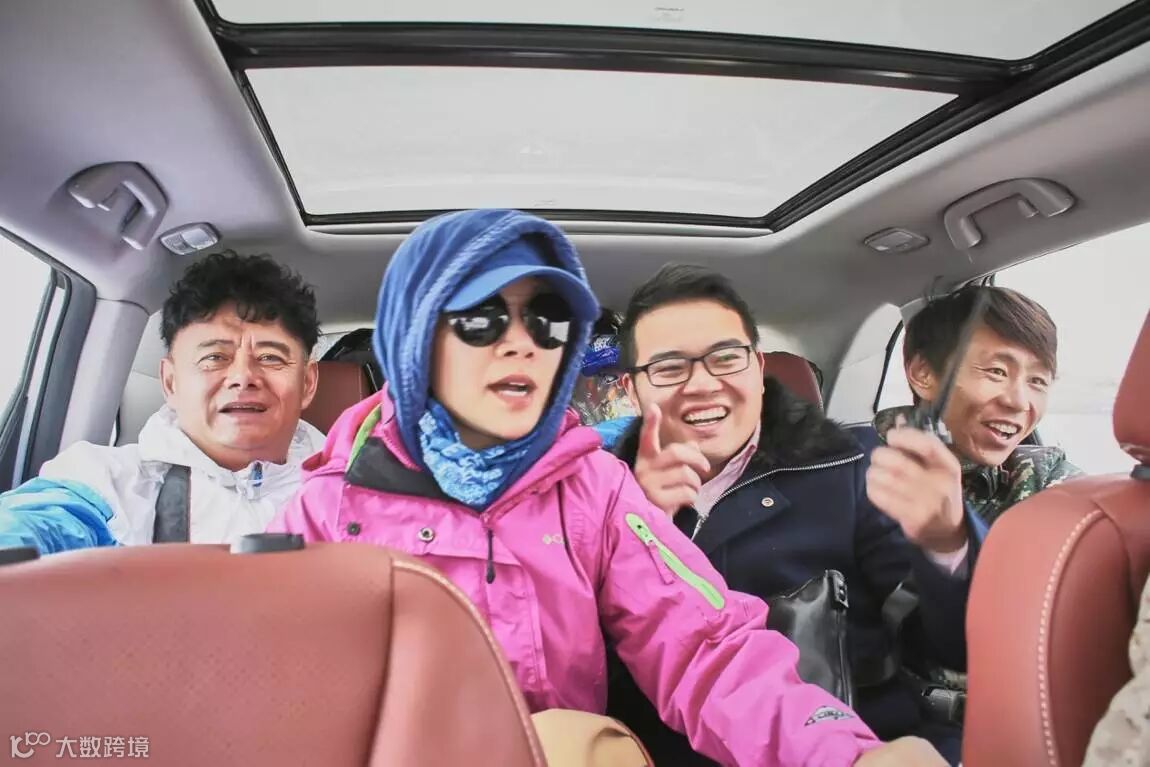 然而天公并不作美,不到半小时的光景,狂风肆虐而袭,夹杂冰雹雪子,劈头盖脸便落了下来。茶卡盐湖的风力,可以大到让人无法站立,行走更是困难重重。大风卷起衣角和头发,雪化成雨水打在脸上,狂风里还带着粗糙的盐粒,温度瞬间下降到零下五度!由于车队队员均为步行进入景区,此时唯一的一台获准进入盐湖的众泰T600开始大展身手。肩负起在恶劣气候与路况下的承载任务。如此恶劣的环境,对整车操控、品质与空间均有较高要求,而随着队员们陆续上车,单台T600装载了惊人的八位队员,完好无损地驶出了狂风地段!