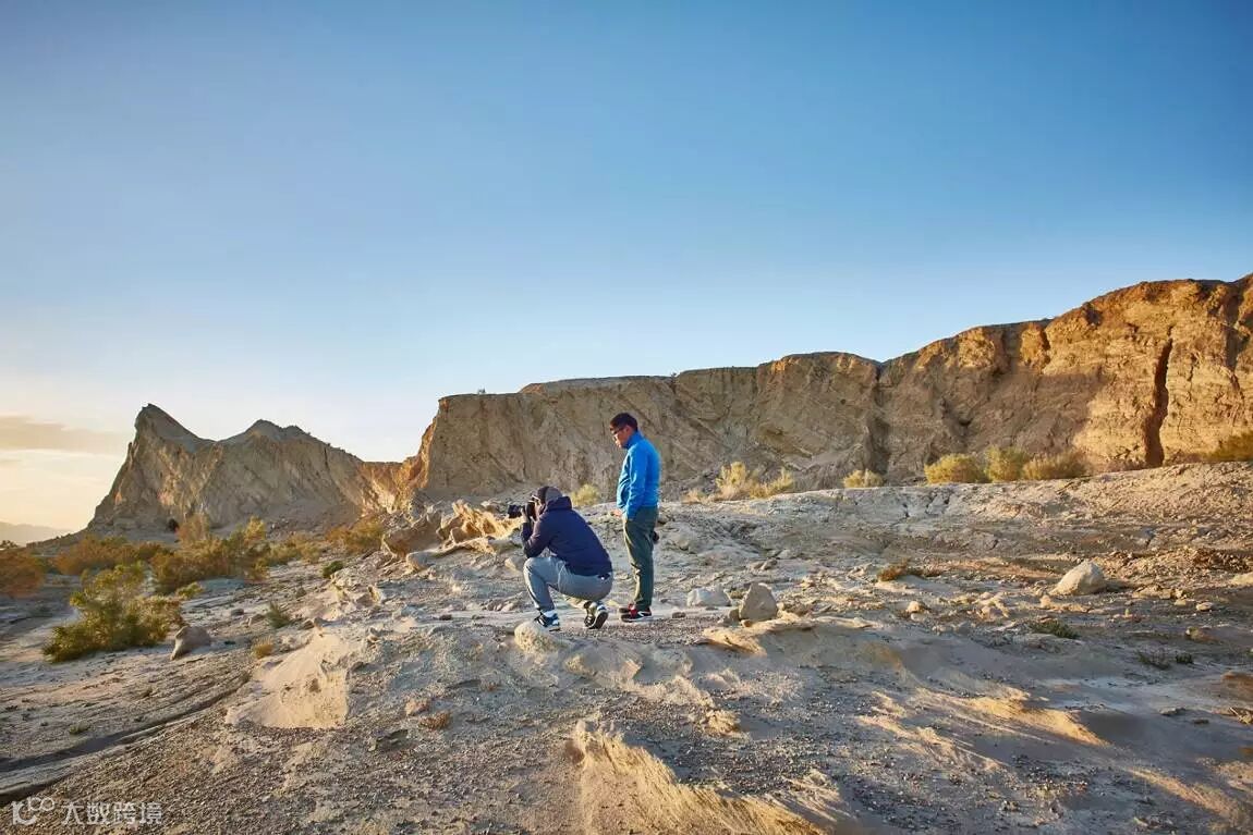 外星人遗址区域为雅丹地貌,与外星人并无关联,也许会让人产生失望的感觉,但有别于周边的地貌特征也同样令人兴趣盎然。时值黄昏,混合着光线,丰富的沙石表面变幻出不同的褶皱和沟壑,车队行进到遗址深处的胡杨林里,静静数着岩石的层次。