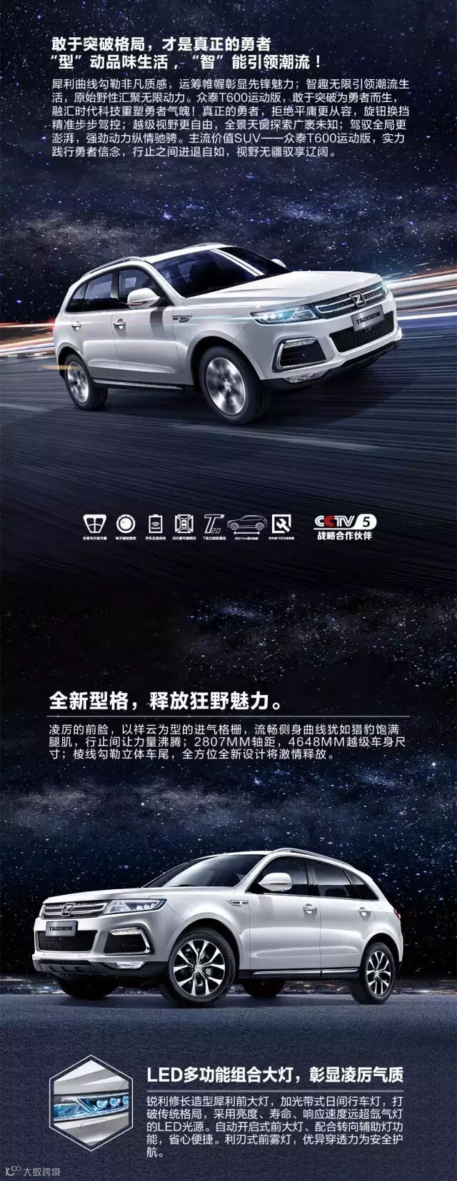 导读:行止有度视野无疆众泰T600运动版拒绝平庸 众泰T600运动版融入国内外先进设计理念,犀利曲线