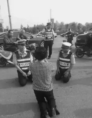 昨日下午,记者和“下跪”交警程龙取得联系,他表示没有想到这个事情在网络上传播得如此火爆。据程龙讲述,当时他和同事们在正常执勤,排查到一辆家用轿车时发现男驾驶员涉嫌酒驾,他们要求对方靠路边停车接受进一步询问,车上同行的老人突然下车直接跪到面前求情。“当时我还有同事谢帅刚见状也就跪在老太太面前了,没有想别的,就觉得穿这身制服要和老人平等对话。”