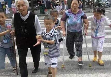 学龄前儿童以及不能辨认或者不能控制自己行为的精神疾病患者、智力障碍者在道路上通行,应当由其监护人、监护人委托人,或者是对其有管理、保护职责的人带领,所以不应该是“孩子扶老奶奶过马路”,应该是老奶奶照看着孩子过马路。