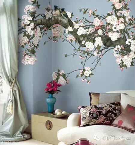 自己动手或找会油画的朋友帮你装点墙面,比选择那些华丽的壁纸更有情趣,当然,在之前,一定要经过精心的探讨与选择,因为一旦画在墙上,就不宜轻易的改变。