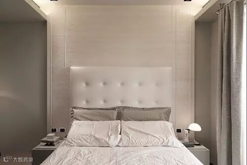 编辑点评:主卧房墙面施以盘多磨表现质朴静谧。