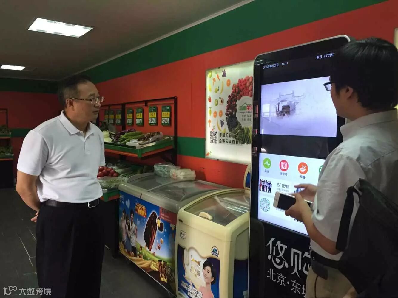 区商务委主任刘健介绍了东城区商务委员会历时两年搭建完成的智慧商务平台的便民服务功能,通过移动互联网的技术,实时的将东城区15家标准化菜市场、17家天镇菜市场、39家崇远菜市场、17家奥世凯连锁超市的相关菜价数据汇总反馈给东城居民,并通过农产品溯源体系为市民提供更加安全、规范、有序的蔬菜零售流通网络服务体系。